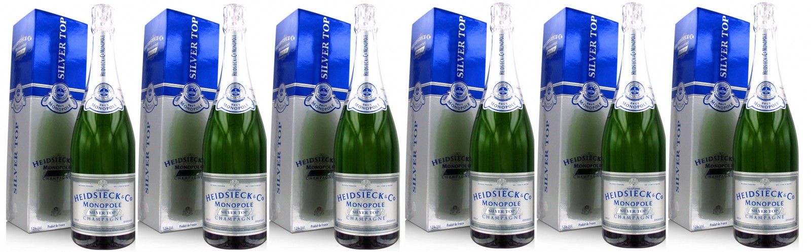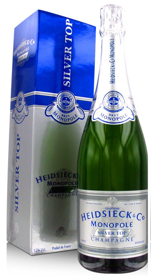 Carton de 6 Champagne Heidsieck-Monopole Silver TopUn carton de 6 bouteilles 75 cl Champagne Heidsieck & Monopole Silver Top A l'Oeil : Teinte jaune avec reflets émeraude. Au Nez : Le premier nez est subtil. Les arômes se découvrent par les fleurs blanches pour évoluer sur des notes un peu plus prononcées de pèche blanche. Le vin se réchauffe, le nez est bien plus présent. Il est assez volumineux. À ce moment de la dégustation se dégagent des arômes des pomme cuite et de torréfaction. En Bouche : La bouche est d'une bonne présence et assez lumineuse. Elle est longue sans être lourde. Les saveurs ressenties sont en harmonies avec les arômes de fruits compotés trouvés au nez. Vous pouvez même relever certains arômes d'évolution tels le cacao et le café.