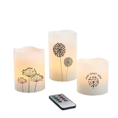 Set de 3 bougies LED en cireSet de 3 bougies LED en cire véritable, contrôlable par télécommande, 3 tailles, couleur ambre, senteur vanille, flamme vacillante ou fixe, 2 intensités de lumière, fonction minuterie permettant l’arrêt automatique de l’éclairage après 4 ou 8 heures d’utilisation, interrupteur ON/OFF Produit sur commande, disponible sous 8 jours Produit disponible sur Commande 20 000 pts TTC |